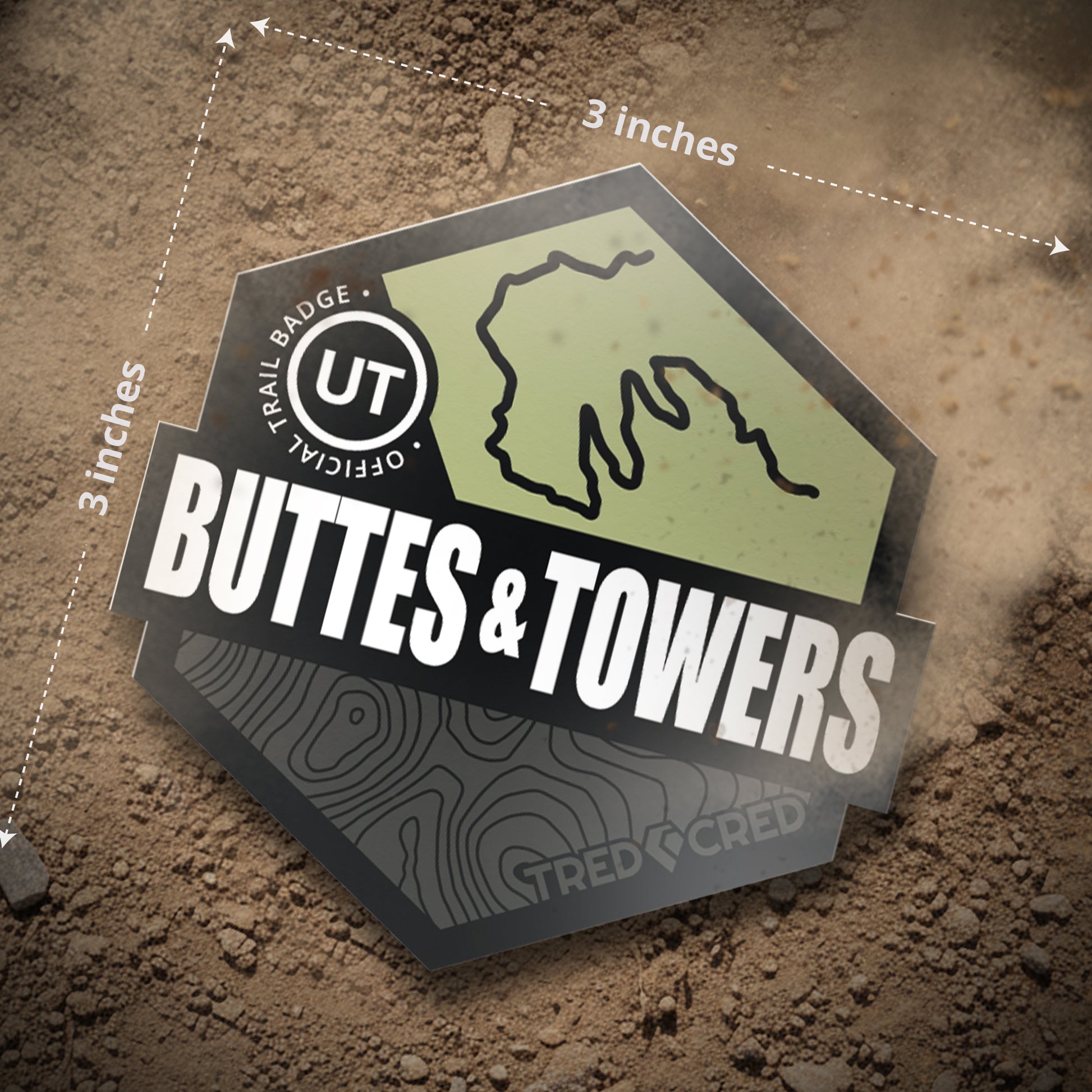 This isn't just a sticker; it's a badge of honor. Our Buttes and Towers sticker is the toughest sticker you'll ever own, built with the highest quality, durable vinyl to withstand scratching, rain, and sunlight without fading and peeling. Rep your off-road journey on your rig, cooler, water bottle, laptop, or wherever you want to show your passion. At a perfect 3x3 inches, it's the ideal way to prove you were there.