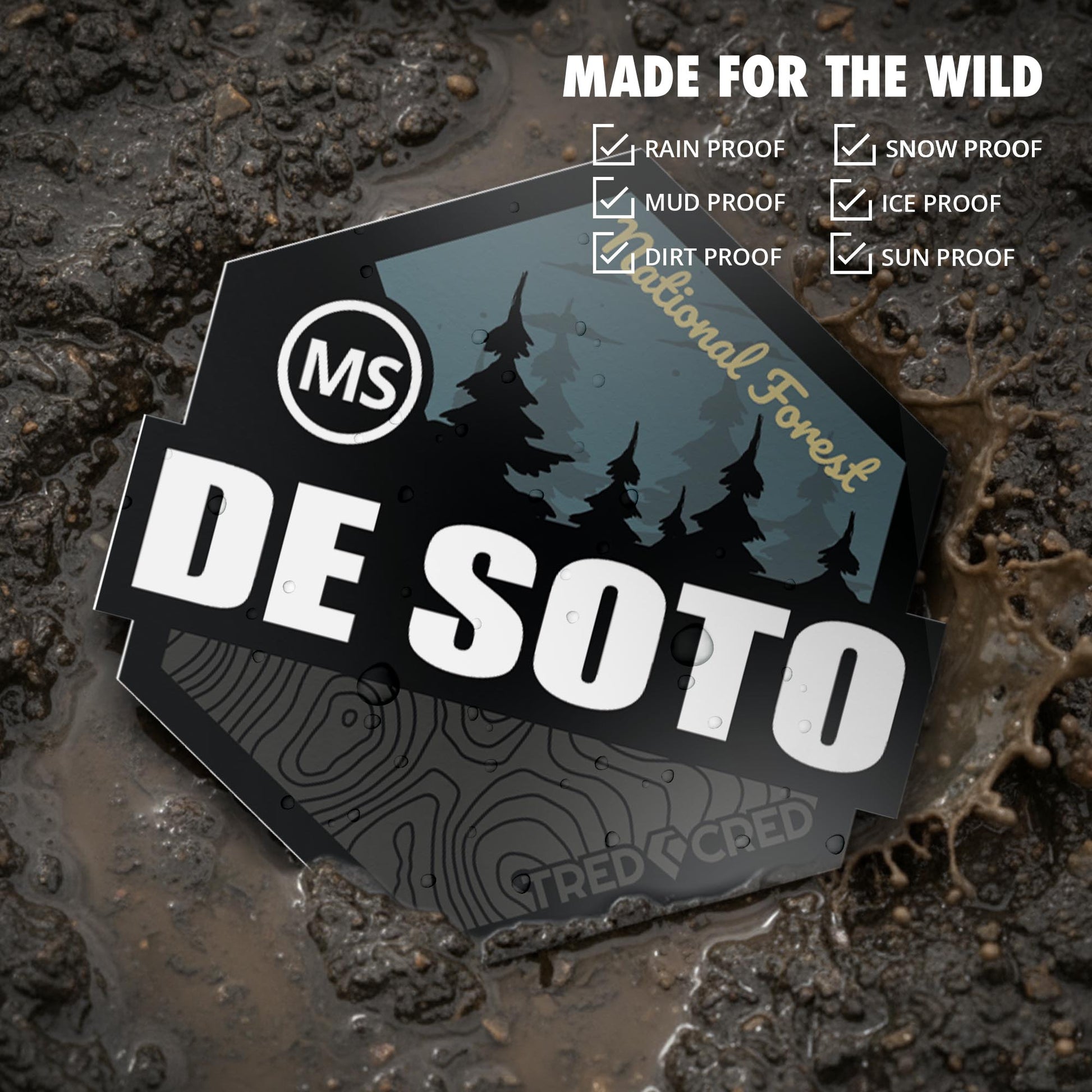 Earn your cred for exploring De Soto National Forest. This is more than a sticker, it’s a symbol of your journey. Made with the toughest vinyl, our sticker is built to outlast sun, rain, and mud without fading. Slap it on your rig, gear, or cooler to show everyone you've been there. At a perfect 3x3 inches, it’s a rugged badge for any adventure.